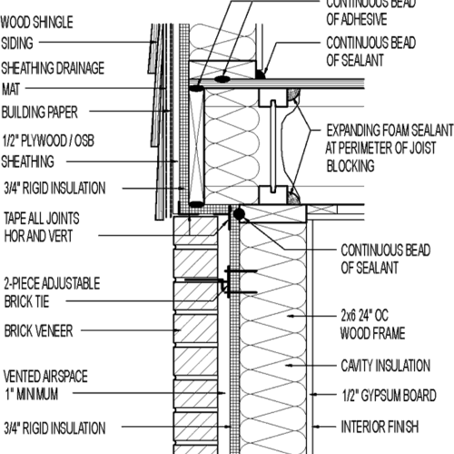 Wall section // brick veneer // 1" rigid insulation ... from i.pinimg.com Think of all the historic buildings that are made of brick: I was in the attic running cable for a poe camera and noticed the brick wall. With added insulation, brick homes do maintain cooler temperatures than buildings made of more lightweight materials.